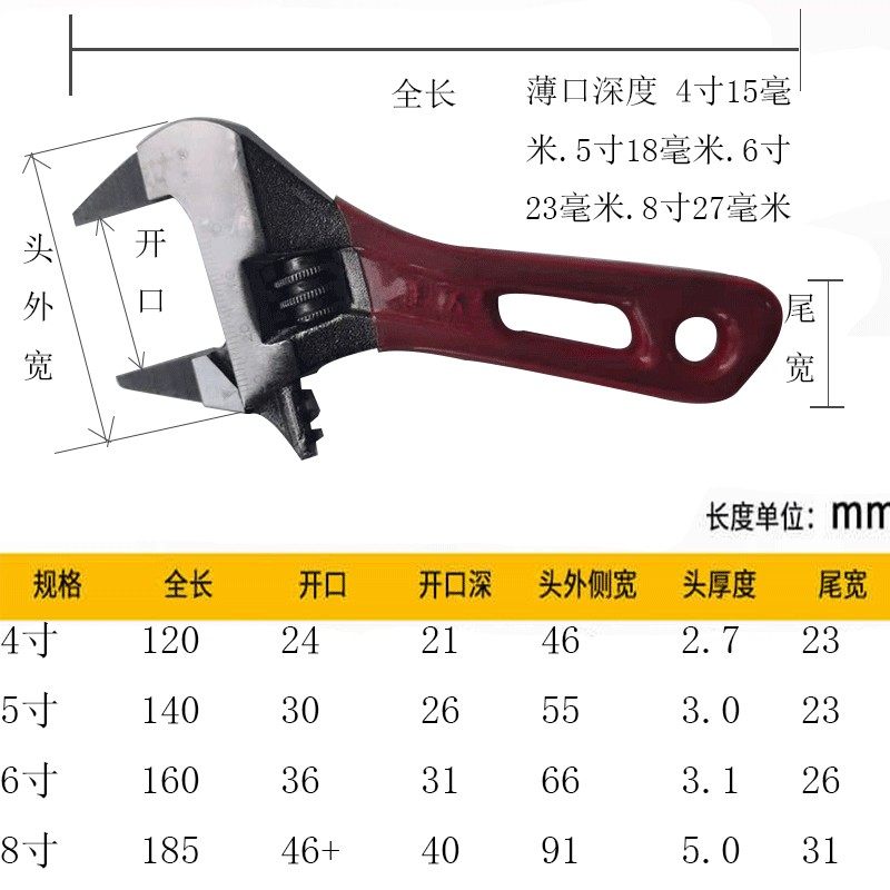 合金钢薄口短柄活动扳手公制迷你小型5寸大开口扳子短把多功能6寸
